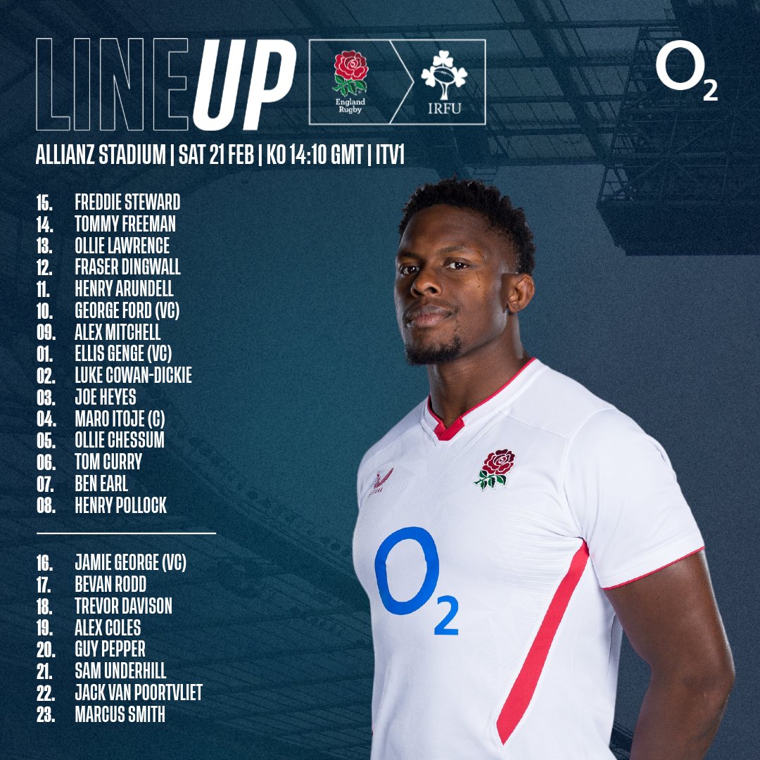 There are three changes to the starting side that faced Scotland last weekend, with Ollie Lawrence, Tom Curry and Henry Pollock coming into the side. Pollock is handed his first Test start in an England shirt. Elsewhere, Jack van Poortvliet and Marcus Smith are named among the replacements on a 6-2 split bench.