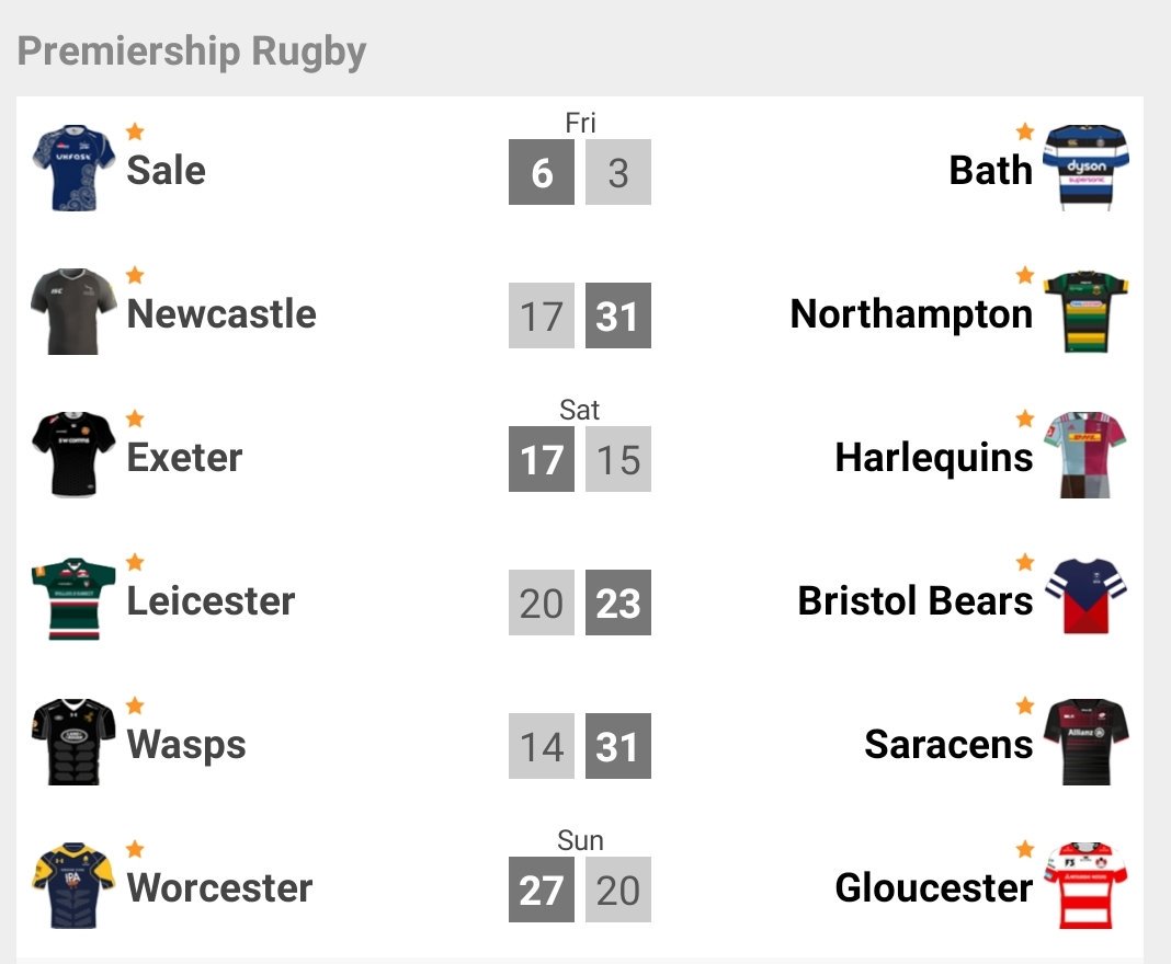 Premiership Rugby Round 20 results