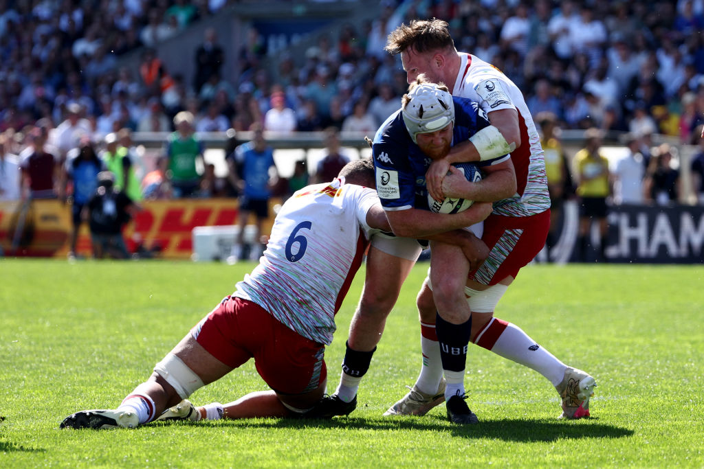 46’ Louis Lynagh tackle on Louis Bielle-Biarrey as Bordeaux look set to score, the home side create another chance a minute later but Nicolas Deportere fumbles.