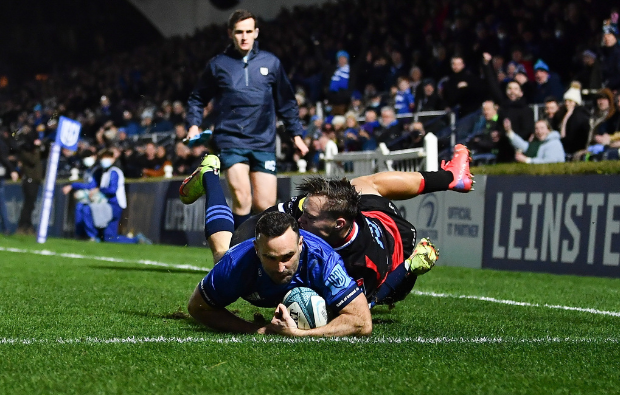 Leinster hit back with two tries in quick succession in the second half and delivered a courageous defensive effort to limit the visitors to one try in the dying minutes, which was enough to secure them their ninth victory of the season.