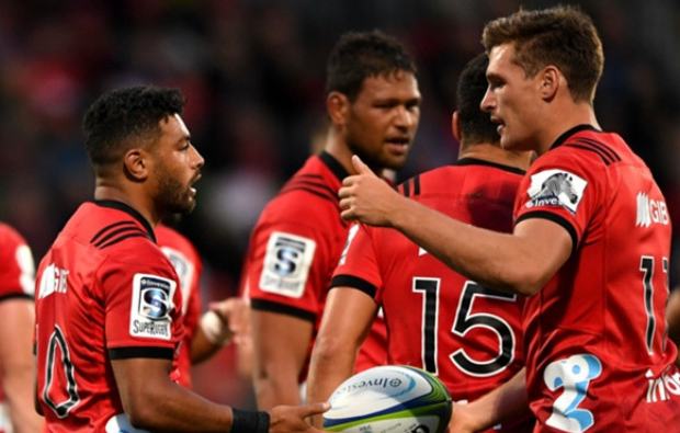 New Zealand pair Richie Mo'unga and Scott Barrett scored two tries each in a convincing win for the Crusaders.