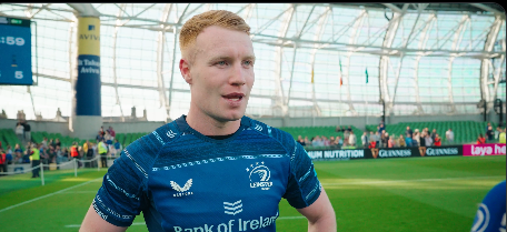 Ciarán Frawley spoke to Leinster Rugby after earning his 100th Leinster Rugby cap. #LEIvZEB #NeverLessThanEverything pic.twitter.com/u7u3hqjVt2