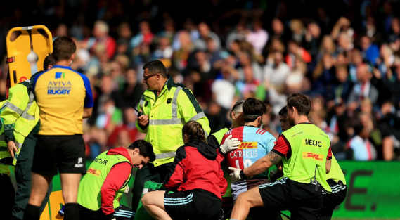 “He was struggling to breathe on the pitch, it just wasn’t clearing. It alarmed (the medics), which meant he needed to get oxygen and get to hospital and get checked out,” John Kingston, Harlequins director of rugby said.