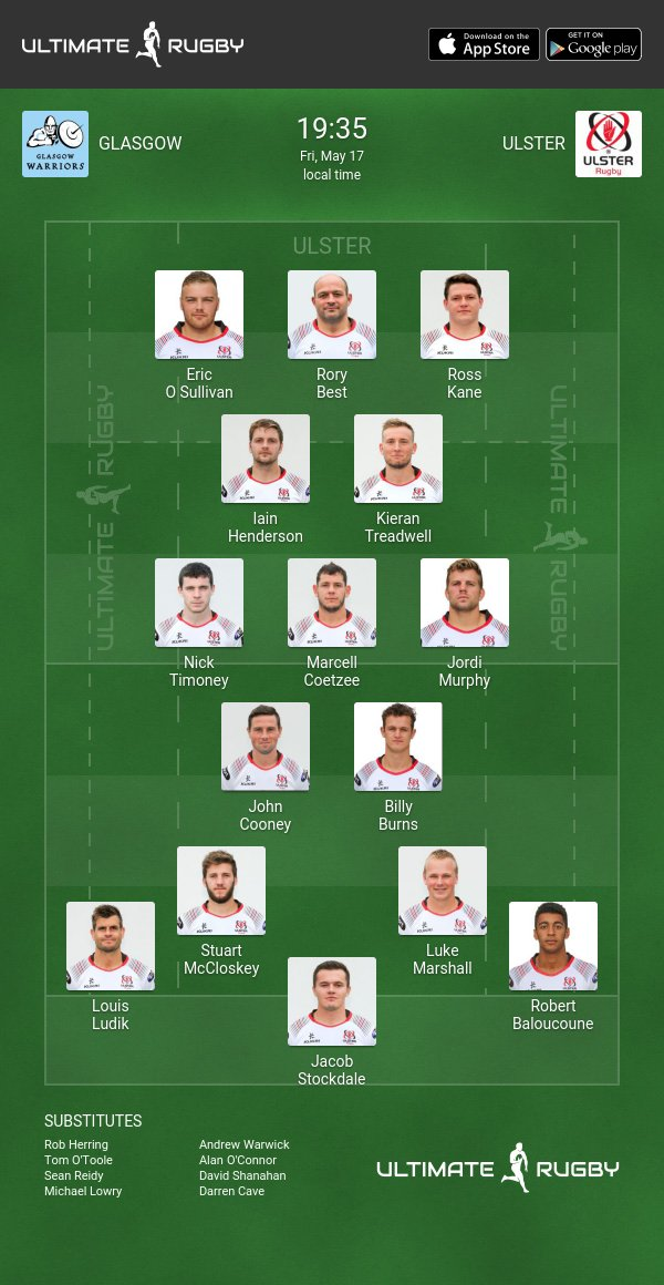 Glasgow Warriors v Ulster Rugby Semi-Final Line Ups