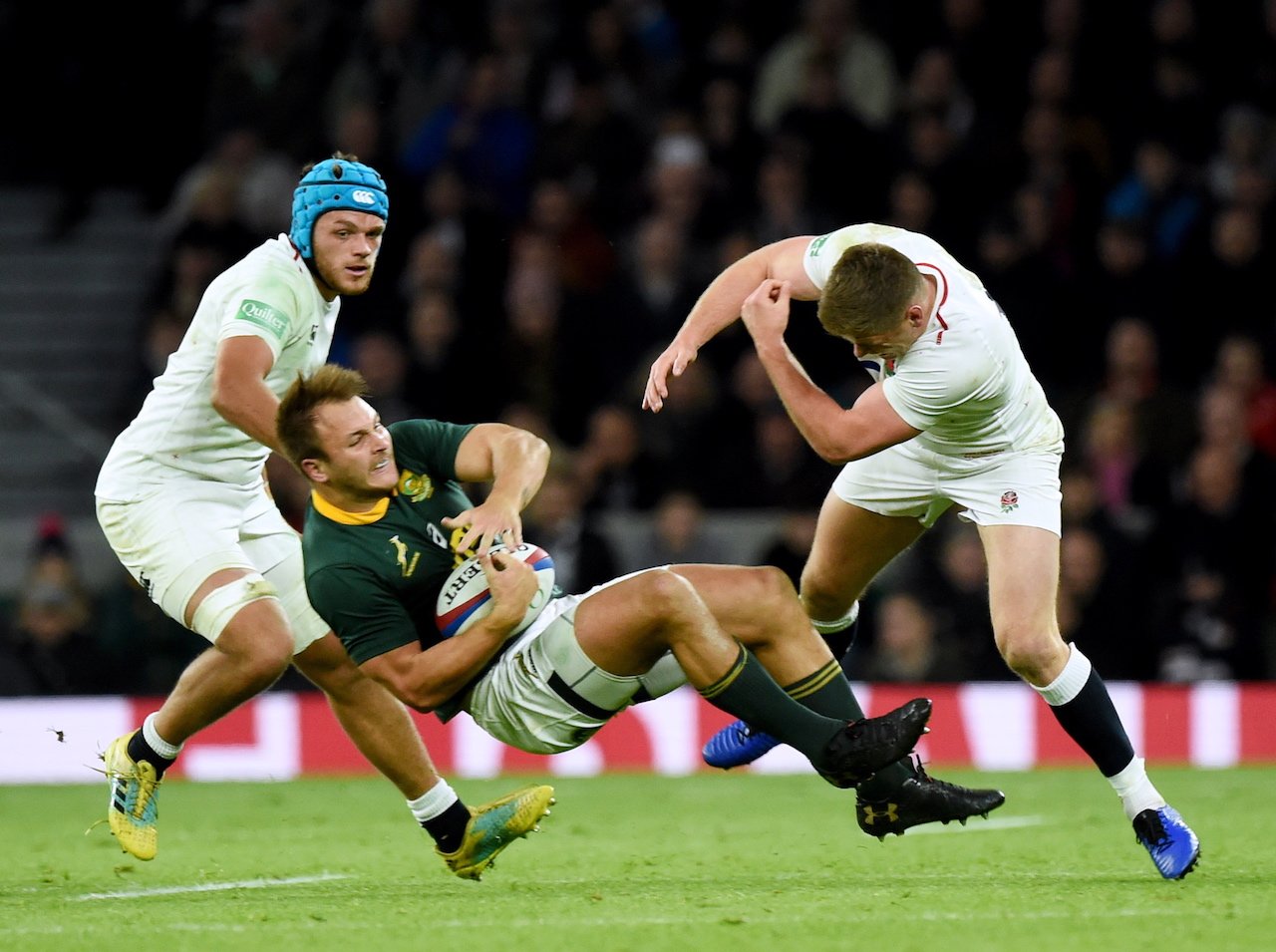 England were leading 12-11 at Twickenham earlier this month when, with the clock having ticked beyond 80 minutes, Farrell put in a strong, shoulder-led challenge on the Springbok.