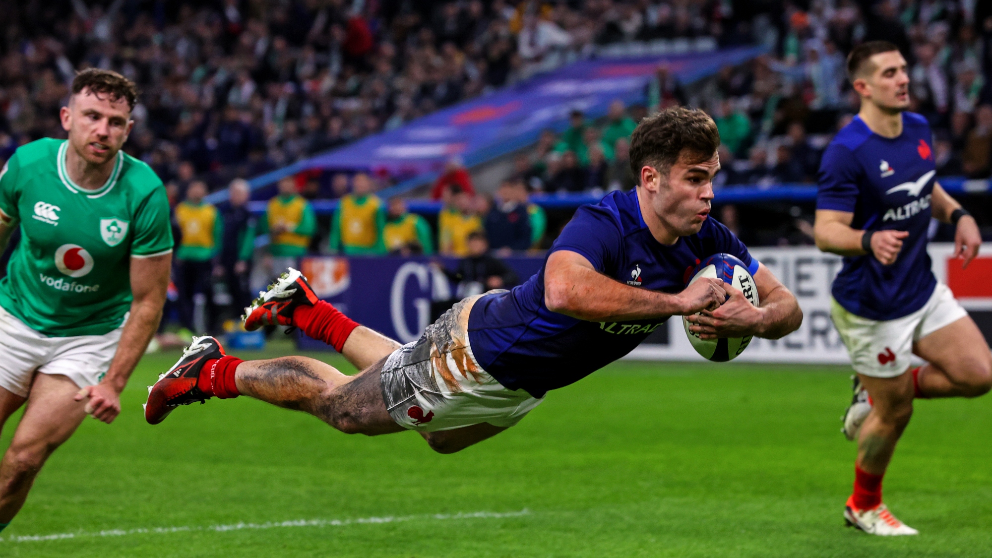 France could have struck first, Matthieu Jalibert dancing through a couple of tackles to open Ireland up, but Gaël Fickou gave his pass to Penaud a fraction early and Hugo Keenan made the important tackle.
