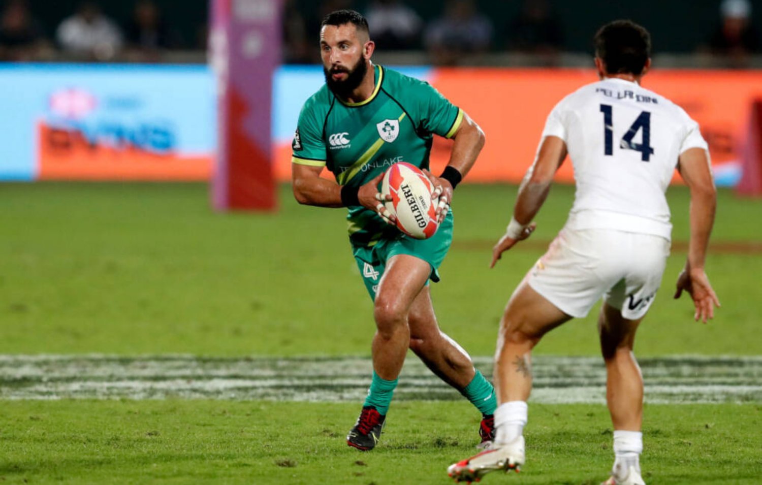 For their semi-final rematch with los Pumas Sevens, Niall Comerford set the tone with an early turnover penalty. Ireland tested Argentina’s swarming defence with some neat offloading, and skip passes from Billy Dardis and Gavin Mullin.