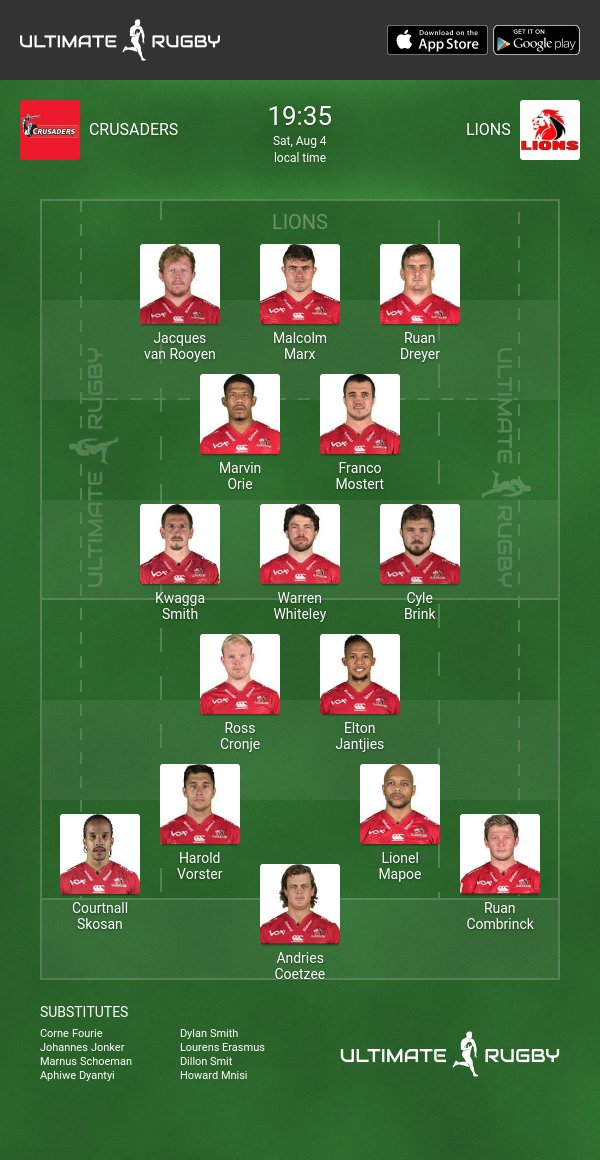 Lions Team For Super Rugby Final