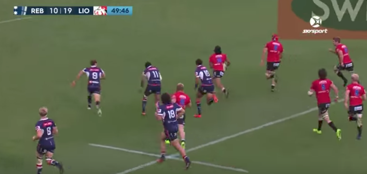 Lions Wing Sylvian Mahuza scores stunning 60m solo try