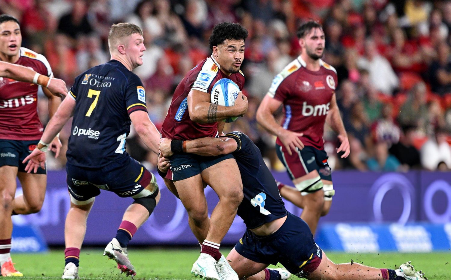 The Reds comfortably dismantled a struggling Highlanders side at Suncorp Stadium today as they picked up a bonus point victory in an effort to keep chase alive at the top of the Super Rugby Pacific table.
