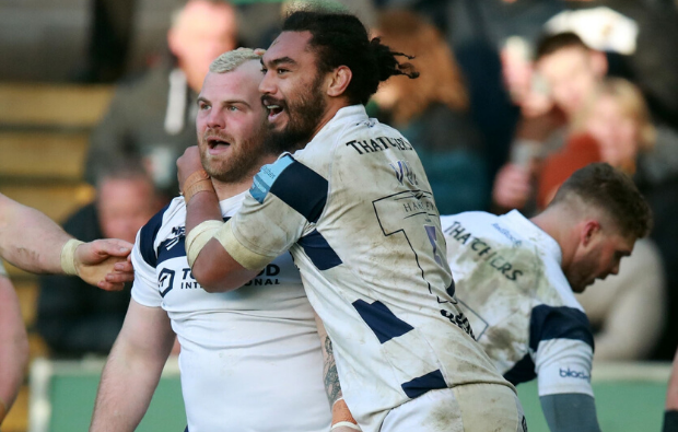 James Grayson failed to add the extras but had a trio of penalties by the 43rd minute, the first of which came after Harry Randall was on the receiving end of a huge hit of Cobus Reinach and failed to release the ball.