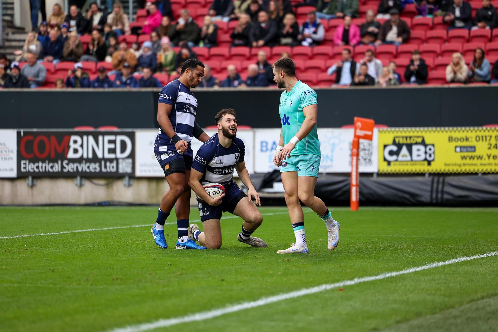 Thacker also crossed for his second of the game on 72 minutes before Blues claimed a consolation score through Alfie Garside as Bears kicked off their Premiership Rugby Cup campaign with a commanding 67-19 win to pick up all five points.