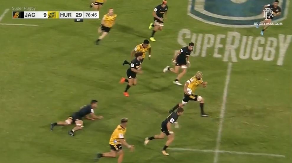 Scarlets new Maori All Black signing Blade Thomson produced an incredible offload against the Jaguares, slicing through the defence to score for the Hurricanes.