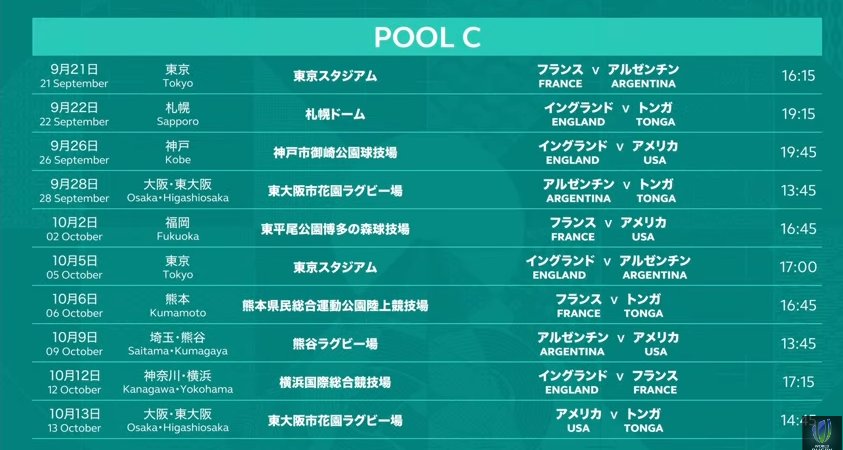 Rugby World Cup 2019 Fixtures
