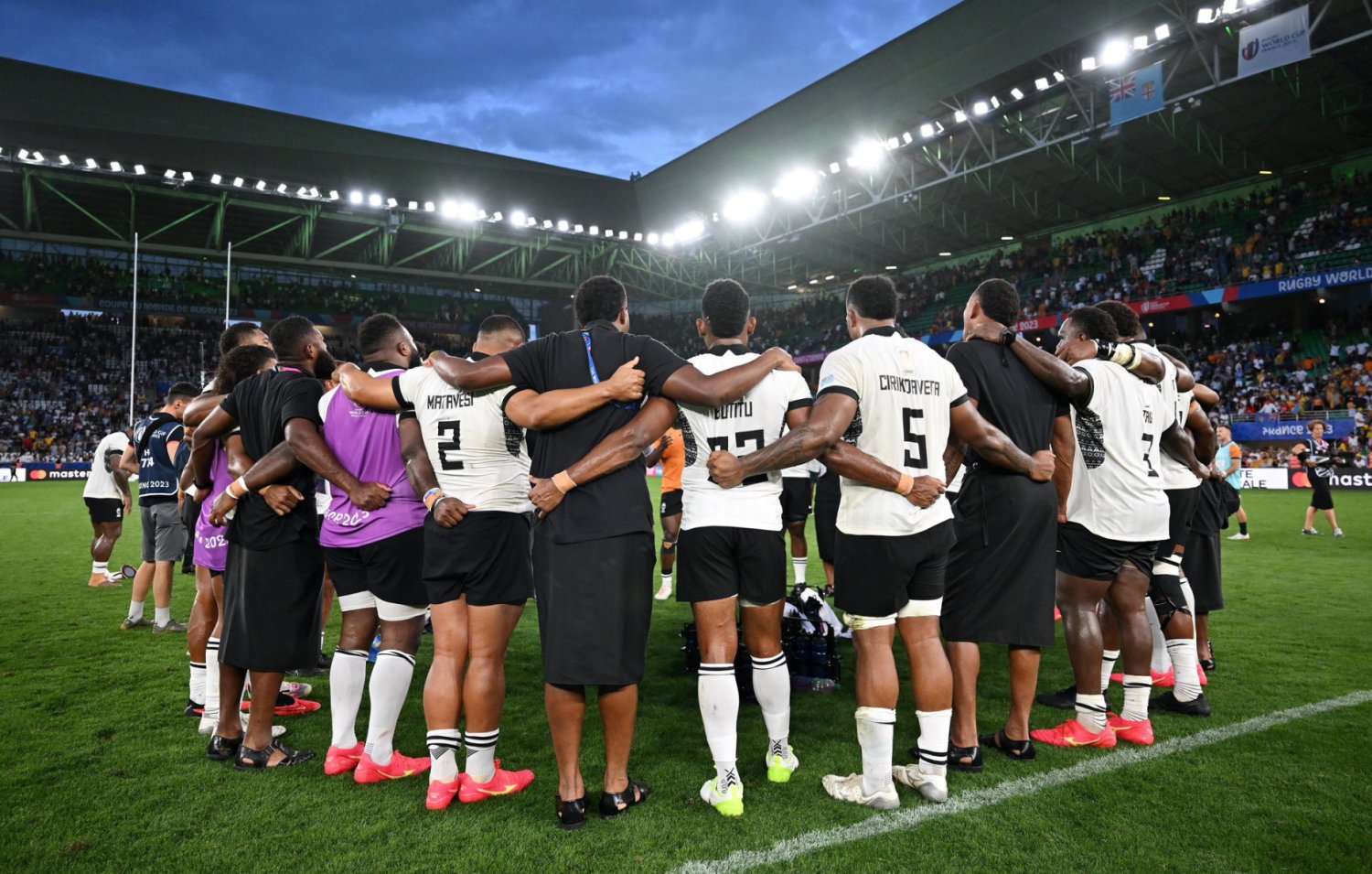 The headline act in the second round of fixtures was Fiji, who beat Australia 22-15 at Stade Geoffroy-Guichard on Sunday - their first victory over the Wallabies in 69 years.