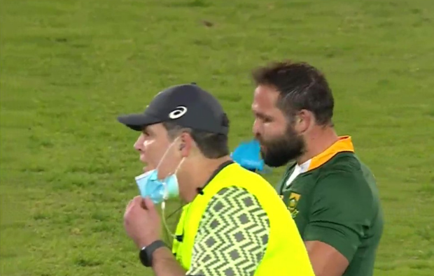 Erasmus was seen on the field and communicating with the South African players, particularly skipper Siya Kolisi.