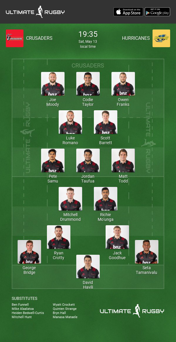 Crusaders vs Hurricanes teamsheets: