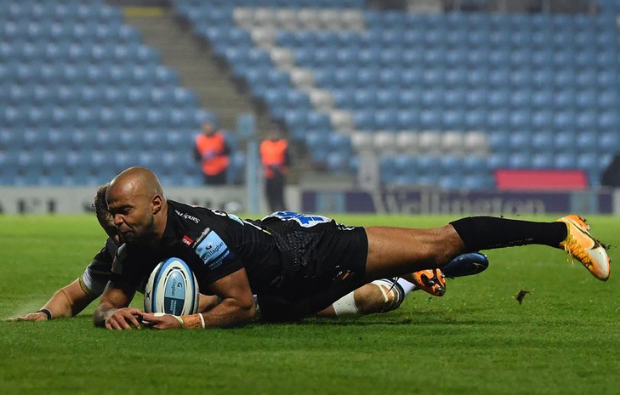 Sam Simmonds scored the first try in the 11th minute before touching down again on the half-hour mark as Exeter led 14-3. Shortly after Sam Simmond's score, winger Tom O'Flaherty came up with a moment of absolute brilliance. Joe Simmonds sent a cross-kick in O'Flaherty's direction with the winger volleying the ball on the fly before winning the race to score.