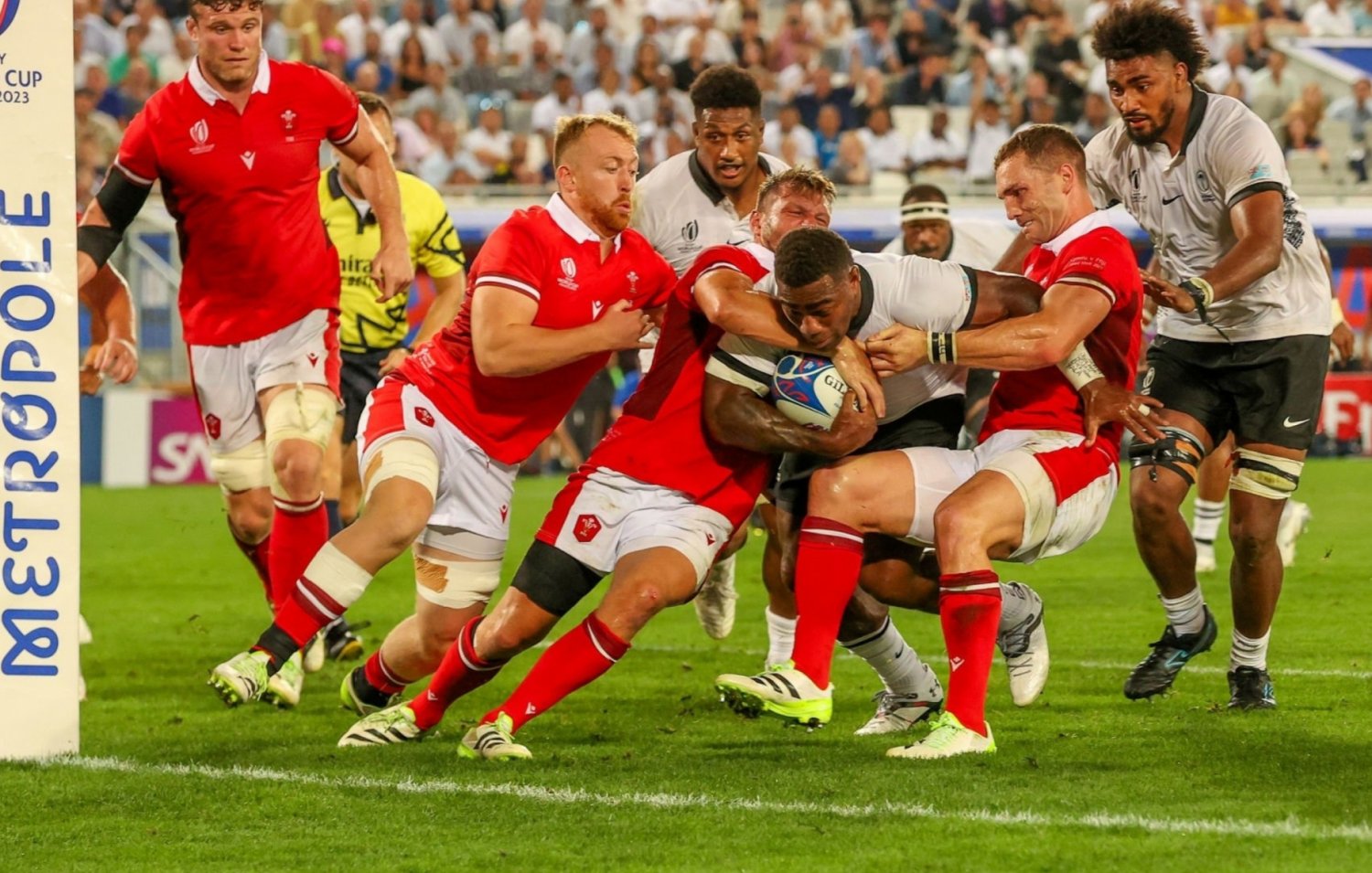 Wales held on for a narrow 32-26 victory against Fiji in Bordeaux on Sunday, with the Fijians camped on Wales’ line in the closing stages of the game but unable to find what could have been a decisive score.