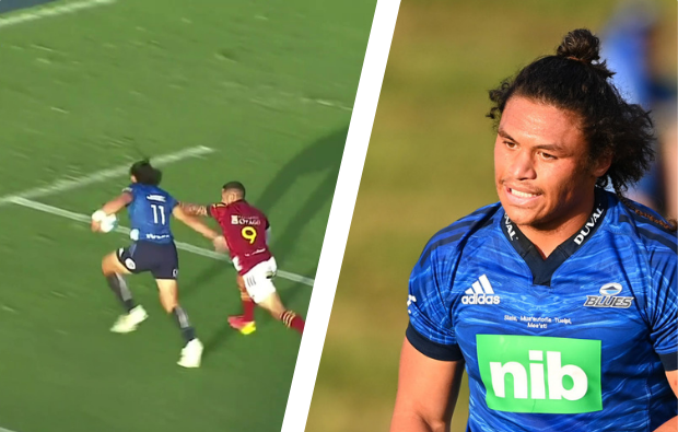 In the early stages of the Super Rugby Pacific game between the Blues and Highlanders, Clarke looked to be in for a certain try after some neat hands from Bryce Heem and Zarn Sullivan.