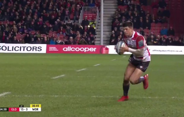 Gloucester youngster Louis Rees-Zammit produced this moment of magic after the cross-kick from Danny Cipriani as Chris Harris finished it off in stellar fashion.