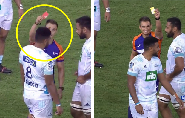 However, the more comical moment of the game was Hoskins Sotutu getting sent to the sin bin for a high tackle, although referee AJ Jacobs accidentally brandished his red card initially, and the Waratahs made their numerical advantage count when Mark Nawaqanitawase crossed after the hour mark.
