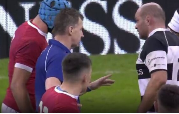 What a way to go... One of the final acts in @rorybest2's illustrious career is to get a telling off from @Nigelrefowens! 🤣🤣🤣#C4rugby #WALvBAR pic.twitter.com/BdbU8zBRgZ