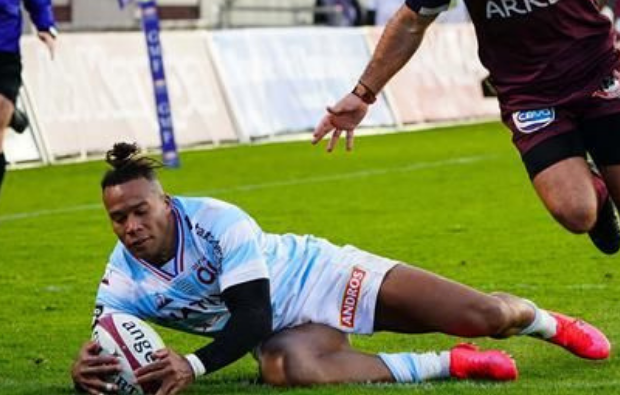 The speedster returned in stellar form Racing to scoring this superb try in the Parisian club's 12-17 victory over Bordeaux.