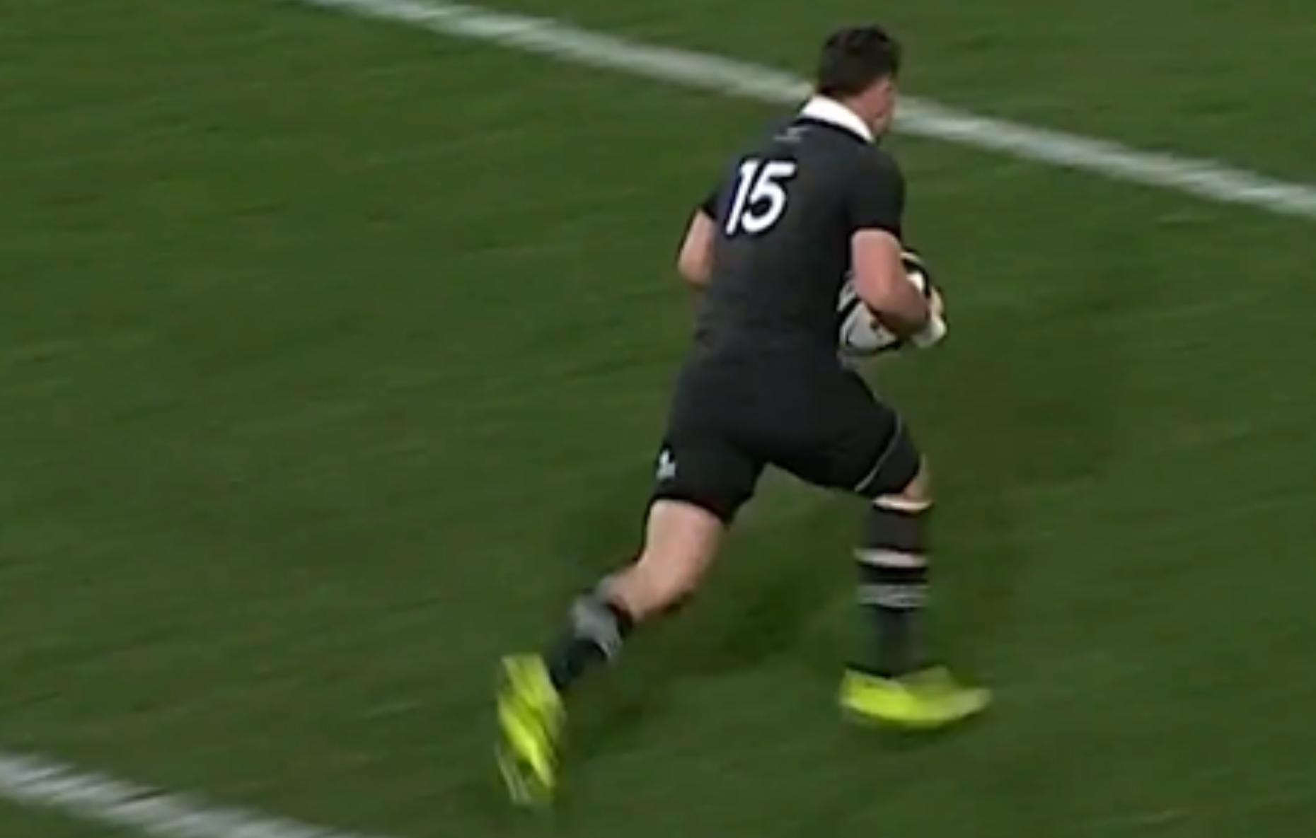 Watch as Will Jordan runs in the first try of the game and the year