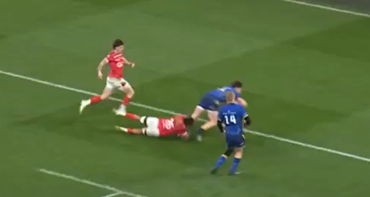 After an equalising try by Garry Ringrose that was followed by a conversion from Harry Byrne, Lainster took the lead after Joshua Kenny scored his tend to try of the season. See below: