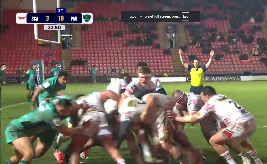 Scarlets welcomed French out Pau to the Parc Y Scarlets in the final days fixture of the Champions Cup. The visitors were quick to get off the mark with three successive tries, the third one coming through subsitute Clément Mondinat. See below: