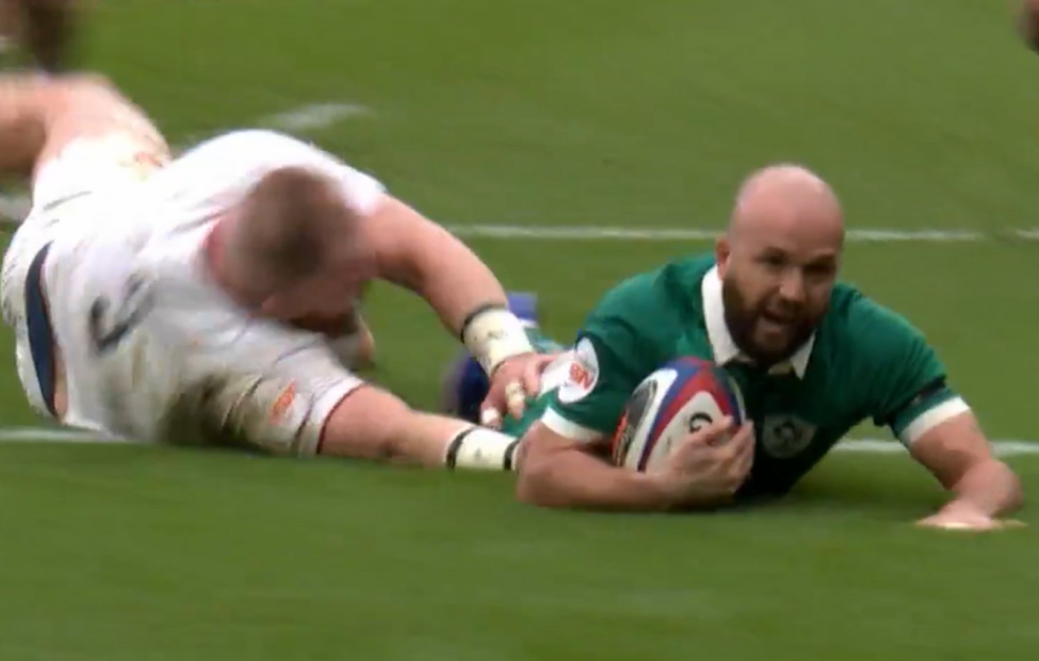 Jamison Gibson-Park reacts fastest and dives over after a quick tap penalty