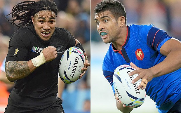 What time is New Zealand vs France in the Rugby World Cup quarter-finals tonight and what TV channel is it on?