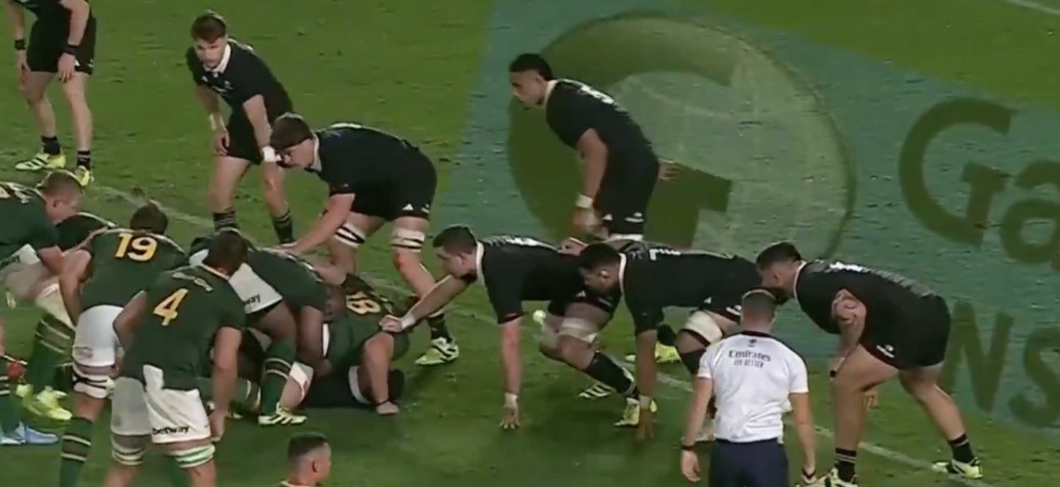 Watch the Springboks send the All Blacks packing with a hige scrum which results in their first try of the game
