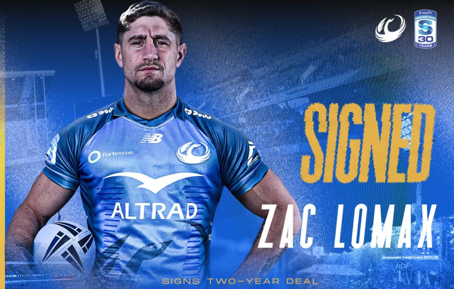 The Western Force and Rugby Australia are pleased to confirm the signing of rugby league international Zac Lomax to a two-year deal, effective immediately.