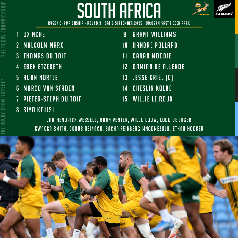 While Siya Kolisi has been passed fit to play, Rassie Erasmus and the Springbok management wanted to give him another week to recover and named Bordeaux bound Jean-Luc du Preez to start at 8 but for the second time this Rugby Championship the hard carrying Kearsney College old boy has had to withdraw late due to an injury sustained at training.