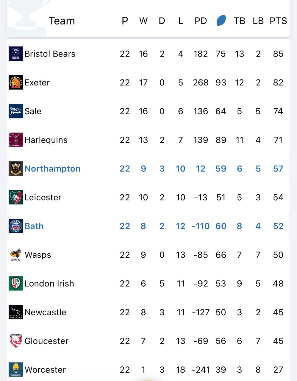 The two points London Irish received for the cancelled game was not enough for the Exiles to claim a spot in the Champions Cup next season as Bath's 30-24 win over Northampton and Wasps' double bonus point loss to Leicester Tigers show them claim the final two places.